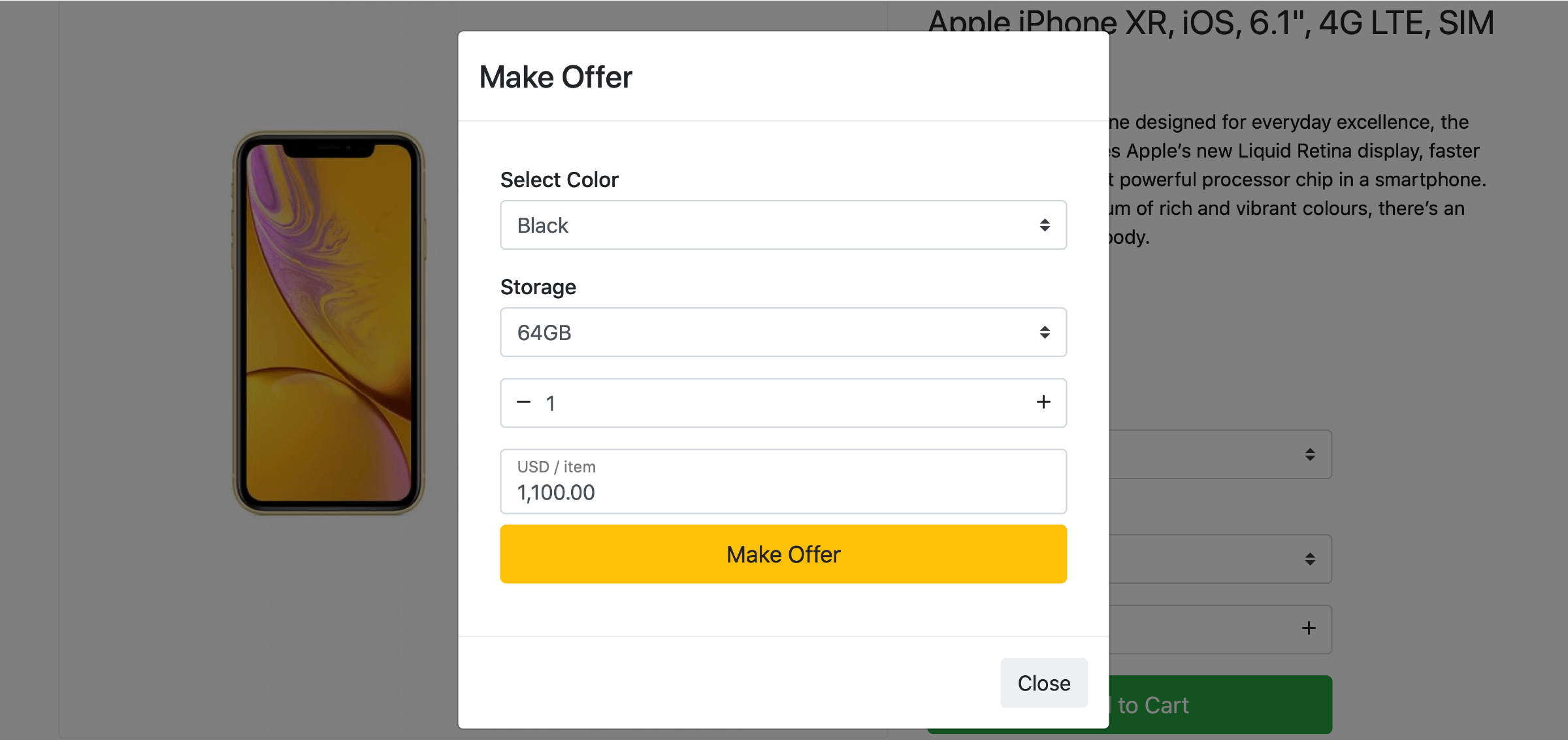 Create an product, enable Accept Offers and set (optional) a Minimum and Maximum Offer Range: